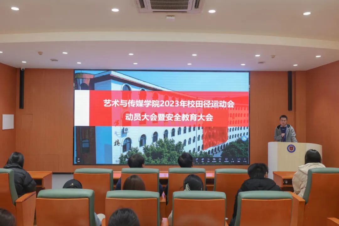 2023年11月14日,球王会在图书馆一楼报告厅举办2023年校运会动员大会暨安全教育宣讲会。公司党总支书记毛宇、分团委书记宋杰、体育公司教师杨洋、全体辅导员、员工干部及全体运动员参与了本次大会。