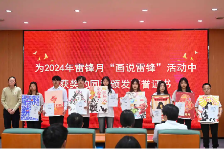 大会第四项,由江雨瑶老师为2024年雷锋月“画说雷锋”活动中获奖的同学颁发荣誉证书。